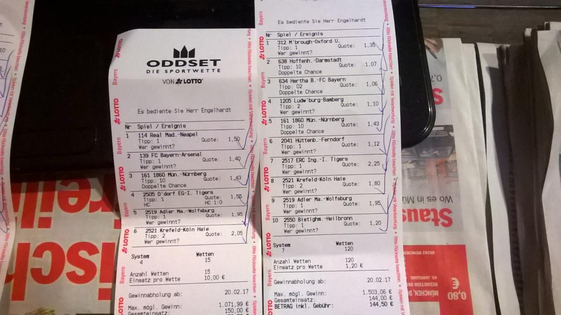 Rigo Domenator hat geschrieben:Naja gegen Augsburg hättest ja beim Wetten auf Weiterkommen nur ne Quote von 0,5. Sweep vielleicht noch 0,9. Also nicht so wirklich interessant für deine wettmillionen.