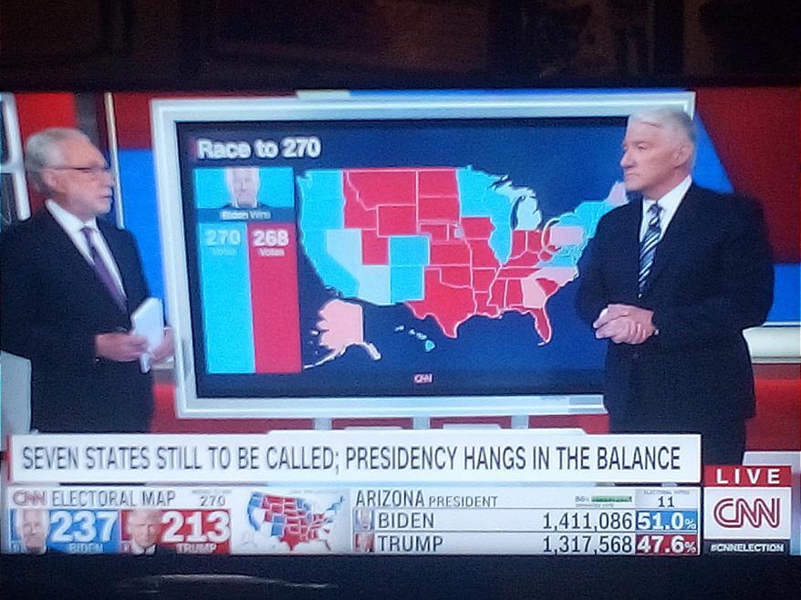 Ich glaube Maine wird in vielen Medien fälschlicherweise mit 3 Wahlmännern für Biden gezählt. Es sind aber nur 2 + 1 für Trump. Kleine Anomalie im Wahlrecht.