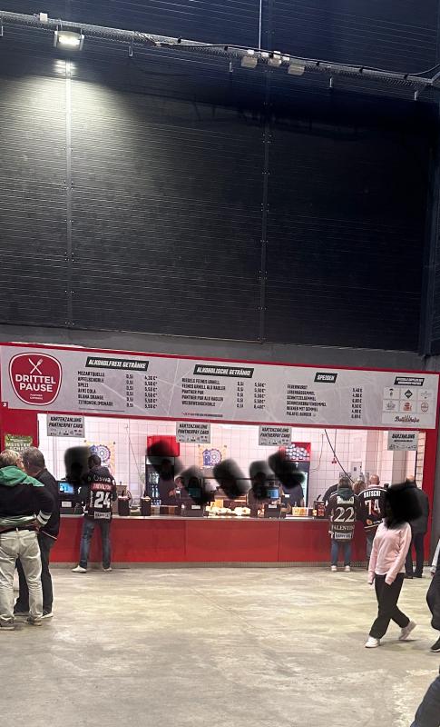 Als ich während der Drittelpausen zur Toilette ging, standen höchstens 2-3 Leute an und das am großen Stand bei dem Fanblock
