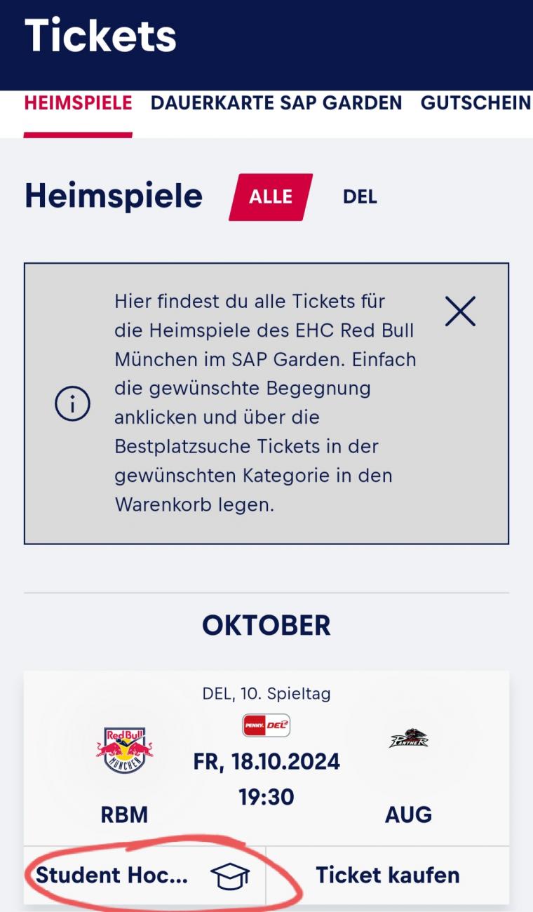 Wäre schön, wenn sich das an der Uni Augsburg rumspräche, und bei Auszubildenden und Schülern über 18 Jahren: wie bei jedem Hauptrunden-Heimspiel kosten am Freitagabend Stitzplätze nur 20 Euro im Block 111 und 118. Gegen uns wurde das wohl ausgeweitet, aktuell gibt's diese Karten zum Beispiel für Block 121.