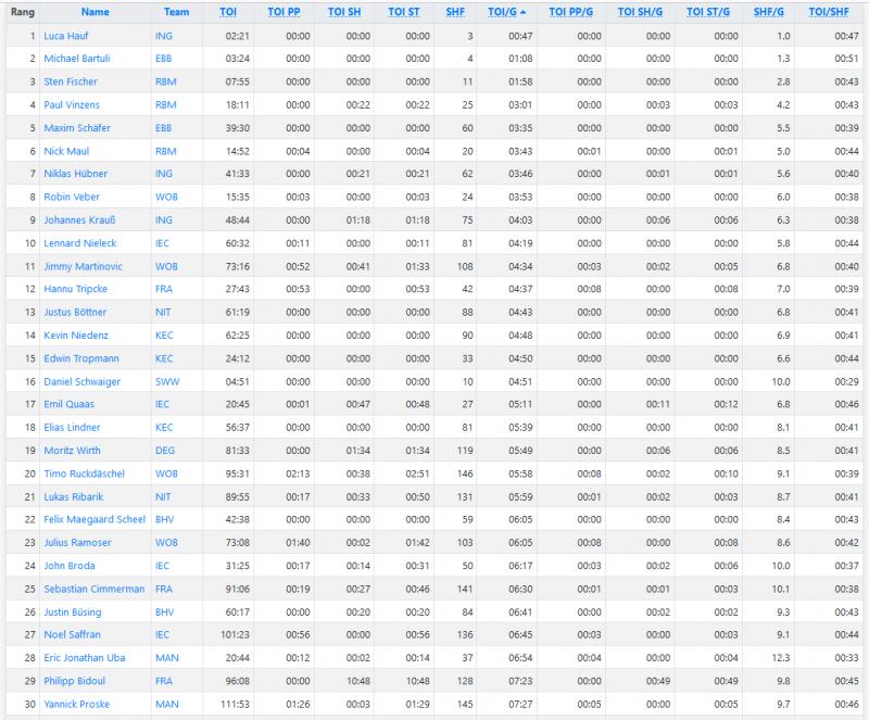 Hier sind die 30 deutschen Feldspieler mit der geringsten Eiszeit pro Spiel. Wer wäre denn da realistisch bzw. würde uns direkt weiterhelfen ?