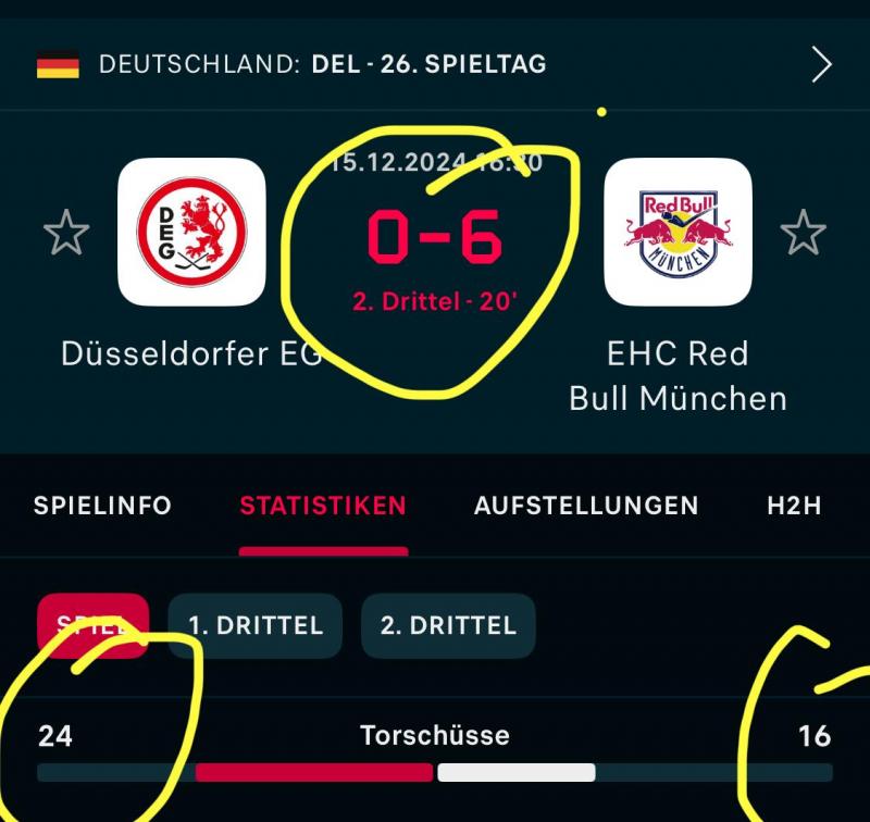 Eine Stunde vor deinem Posting lief das Spiel noch und da führte bei den Torschüssen die DEG. Zwischenzeitlich sogar recht deutlich.