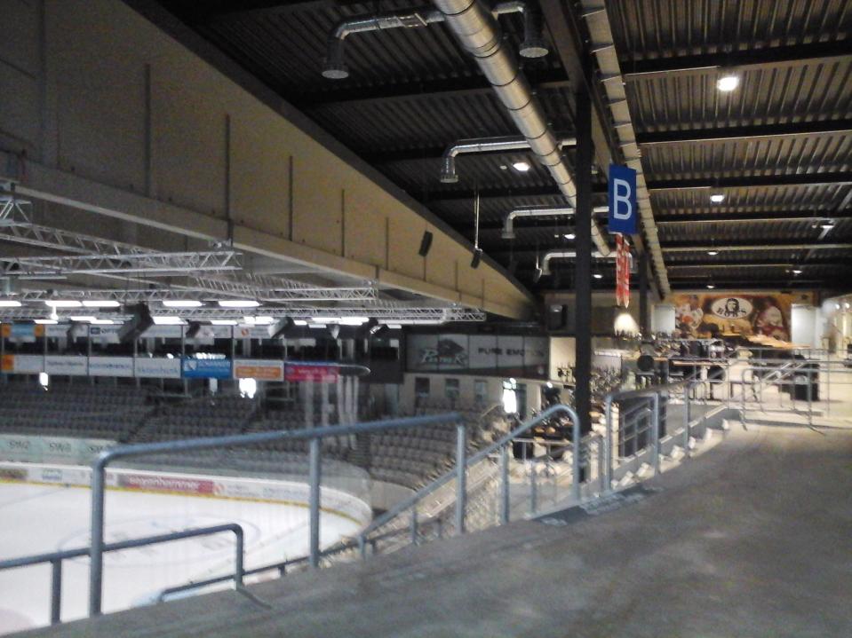 Auf dem ersten Satz der neuen Tribünen konnte man im leeren Zustand auch alles sehen.