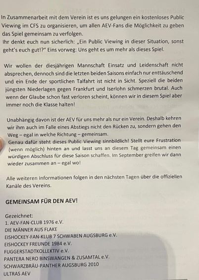 Ich hoffe, dass man wirklich nicht ein einzigen Augsburger da drin finden wird, der sein Ticket dann über Umwege bekommen hat. Und, dass das vielleicht auch mal von Magenta angesprochen wird, damit wirklich jeder mitbekommt, was die da für eine Scheiße abziehen!