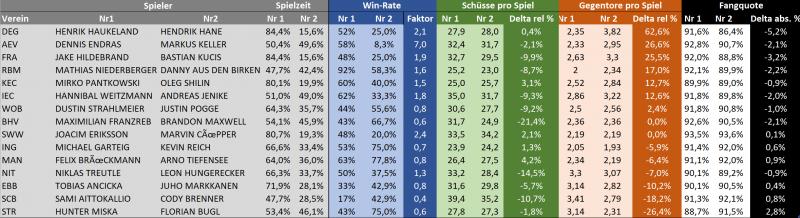 3. Mit Keller bekommen wir absolut 0,62 bzw. relativ 26,6% mehr Gegentore als mit Endras, was nach Hahne/DEG (62,6%) und vor Kucic/Fra (25,5%) der zweithöchste Anstieg ist