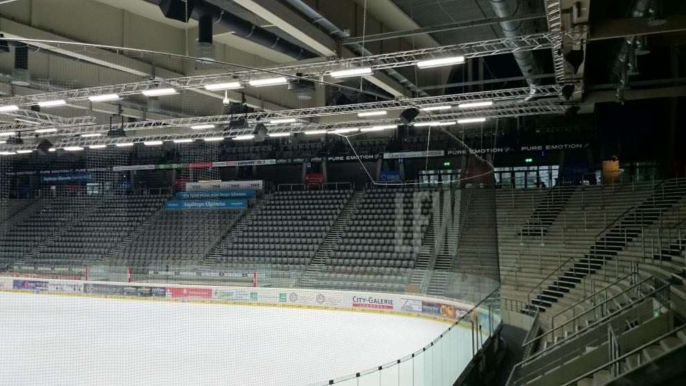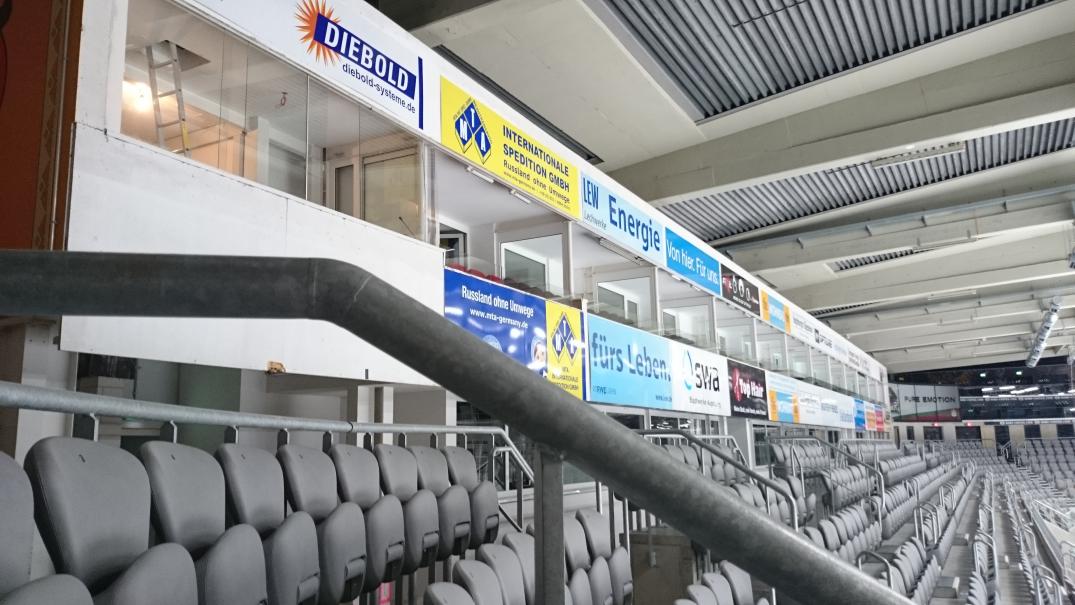 Sehr schön. RT1 im Mittelkreis. Hoffentlich zahlen sie dann auch mehr. Rechts oberhalb die Weinkellerei Kunzmann. Was ich mich frage: Was ist das für ne Firma links oberhalb von RT1. Letztes Jahr war hier glaube ich noch keine Werbung. Sieht aus wie n Pinguin. Hoffentlich sind die beiden anderen Kreise auch voll. In Sachen Eiswerbung hinken wir im DEL-Vergleich deutlich hinterher.