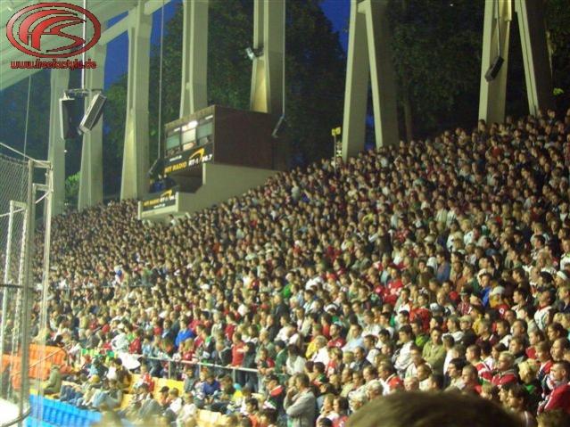 Ich hebe mein Glas und trinke auf das super toll ausgebaute-bunte CFS, auf die Panthers und die heutigen Fan's denen es egal ist wer wo her kommt, wie einer aussieht, ob arm oder reich und wer was für ein Schulabschluss hat. Ich trinke auf all diejenigen die mit Gegengesang/sprüche antworten statt mit "Watschen" oder schläge.